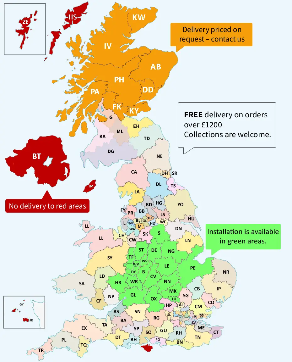 Our products are manufactured at our purpose built factory in Hinckley, Leicestershire (except Composite, bi-fold and sash). Delivery charges are calculated based on distance.