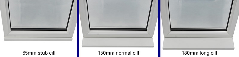 The cill depths are 85mm stub, 150mm normal that covers most situations, or 180mm long.
