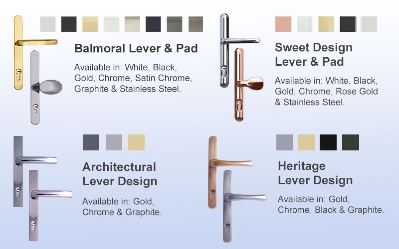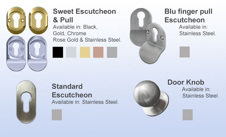 They come in the Sweet brand complete with screwless fixings, except in white, graphite and satin chrome or when having chosen a Balmoral handle where Balmoral numbers may be supplied.