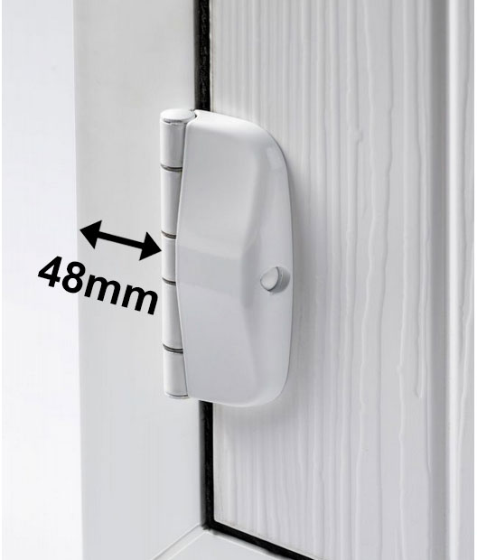 The distance from the hinge to the edge of the outer frame is 48mm: